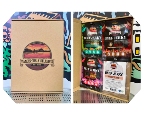 All four handcrafted jerky flavors in one box — made from 100% Norrland beef and bursting with bold flavor.